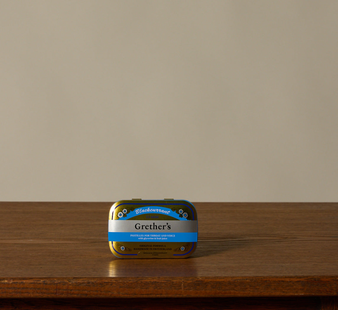 Grether’s Pastilles, based on a 1850 English recipe, combine high-quality glycerin and natural fruit extracts to soothe dry mouths, satisfy sweet cravings, and support vocal health, with a distinctive flavor.