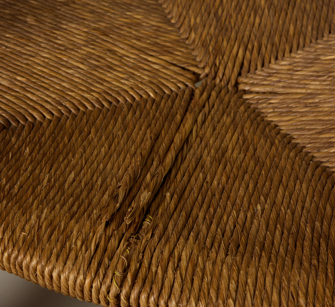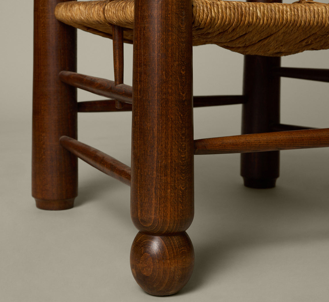 PAIR OF 1940S FRENCH TURNED WOOD AND RUSH ARM CHAIRS BY CHARLES DUDOUYT