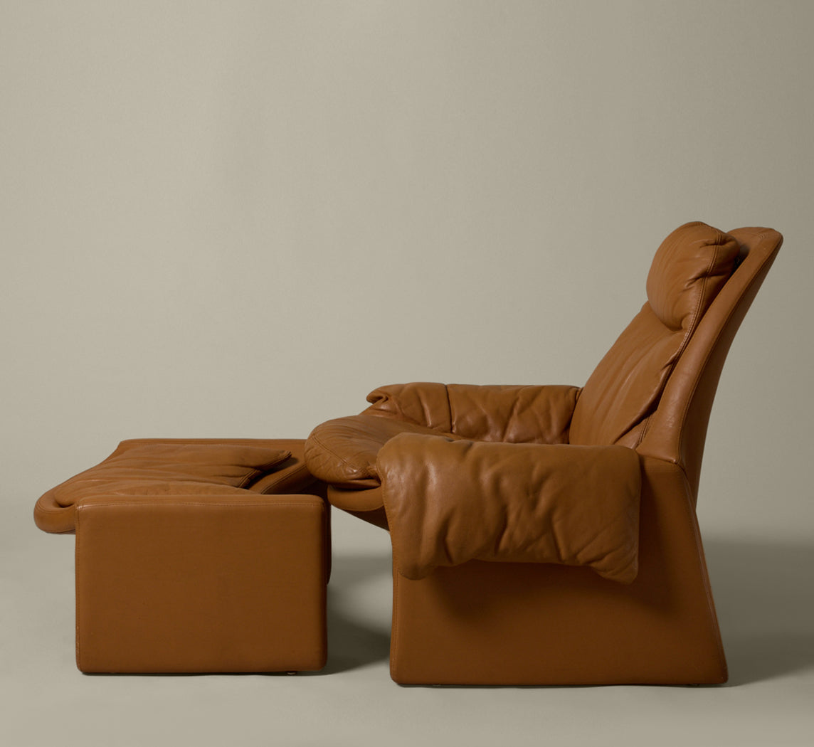 PAIR OF LEATHER VITTORIO INTROINI FOR SAPORITI LOUNGE CHAIRS WITH OTTOMAN, 1960S