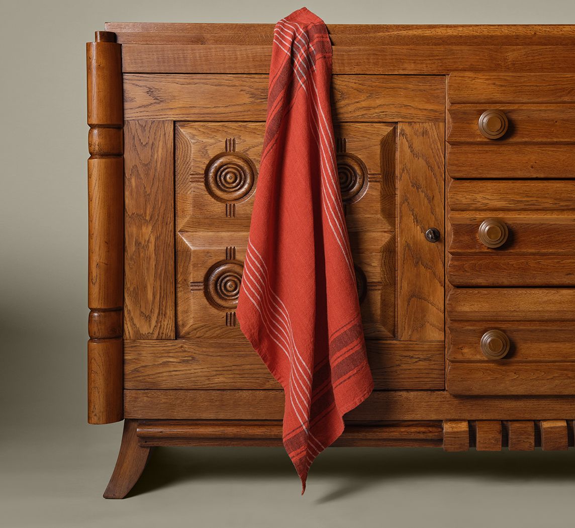 Linen tea towel by Sir/Madam in clay picnic stripe. Pairs perfectly with our other assorted tea towels and after a few washes will be the softest towel in your kitchen. Made in India.