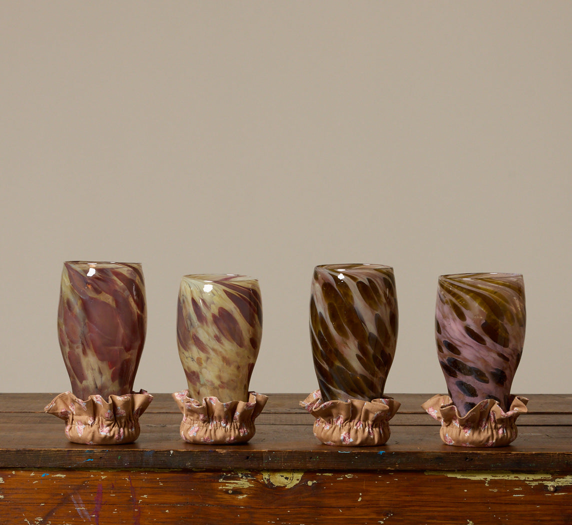 A cotton-covered coaster that slips onto the bottom of your glass to catch condensation, with a removable cork insert for easy washing. A fun little accompaniment to any drink, designed in our Deco Bouquet print to protect surfaces.