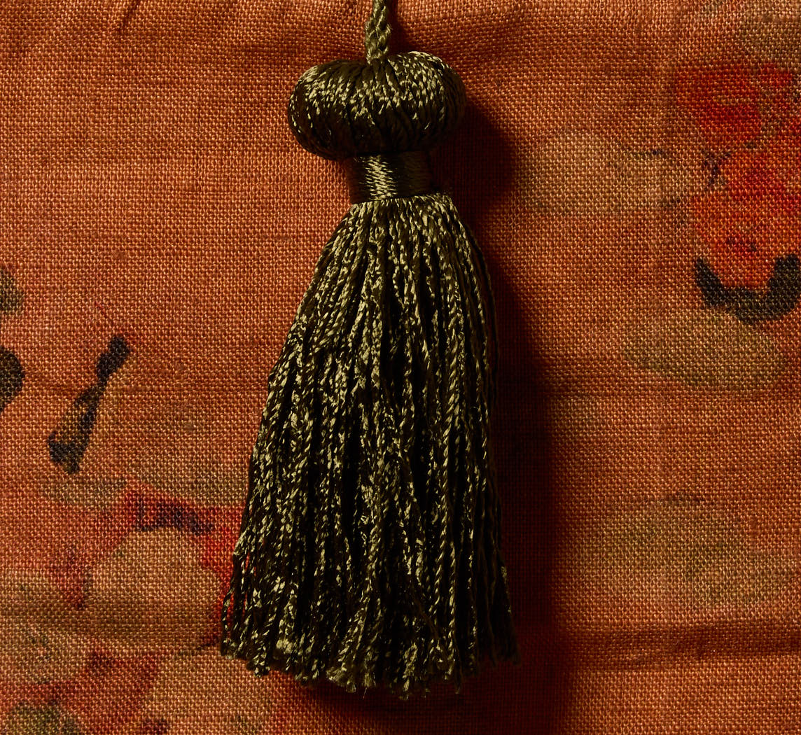 Our signature Pierce & Ward tissue box cover in a apricot floral linen with complimenting olive green tassel. Fits over a standard square tissue box.