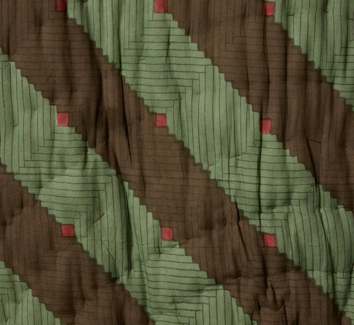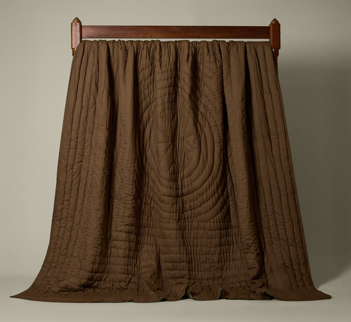 Introducing the Pierce & Ward Crossroads Quilt with a southfield green and brown alternating geometric stripe and solid brown backing. Inspired by our favorite antique quilt patterns and ethically handmade in India from 100% cotton fabric and filling, hand block printed, and hand stitched. A substantial all season quilt that layers beautifully.