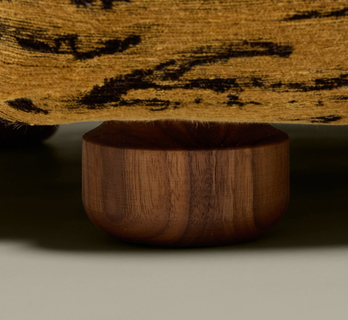 Introducing the newest piece to the Pierce & Ward collection: the John Sofa, named after the master director John Cassavetes. Upholstered in Schumacher Serengeti Tigre chenille, a tiger pattern with a soft, dimensional weave and silk warp that adds subtle sheen and glamour. Low, rounded proportions with deep channeling give it a comfortable, lounge ready profile. Handmade walnut feet finish off this new classic.