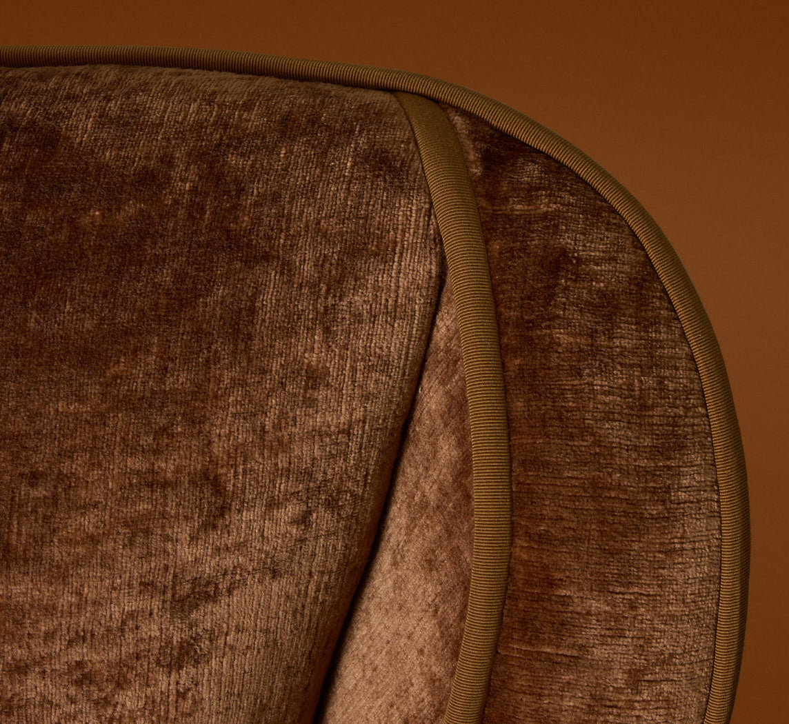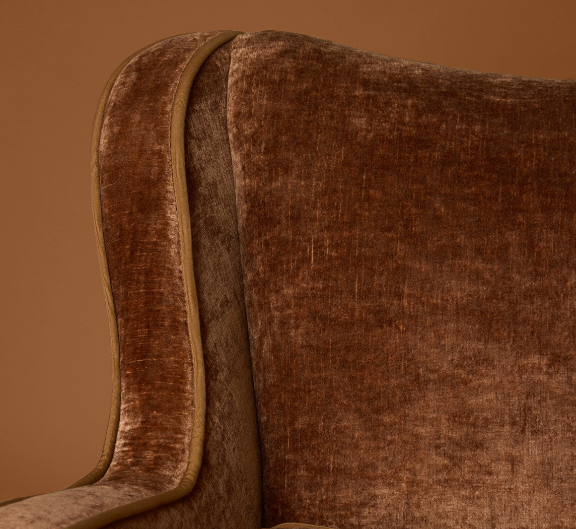 Upholstered in Mokum velvet, the fabric lends depth, warmth, and quiet glamour. Deep down-filled seat cushions and supportive backs offer lasting comfort, set on tapered walnut legs that nod to the piece’s Italian inspiration.