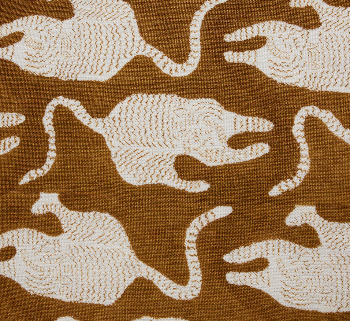 The Silverstein Stripe Disc Pillow is crafted in regal tiger block printed fabric. It features a cream-and-charcoal essex stripe piping and band and an invisible zipper closure.