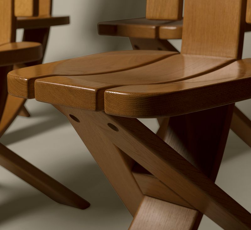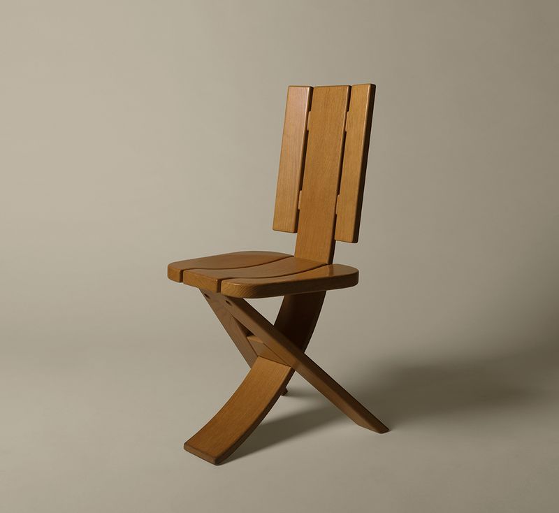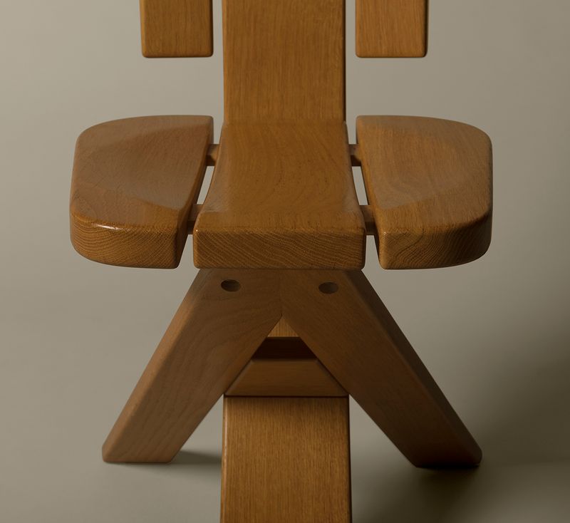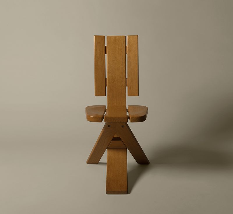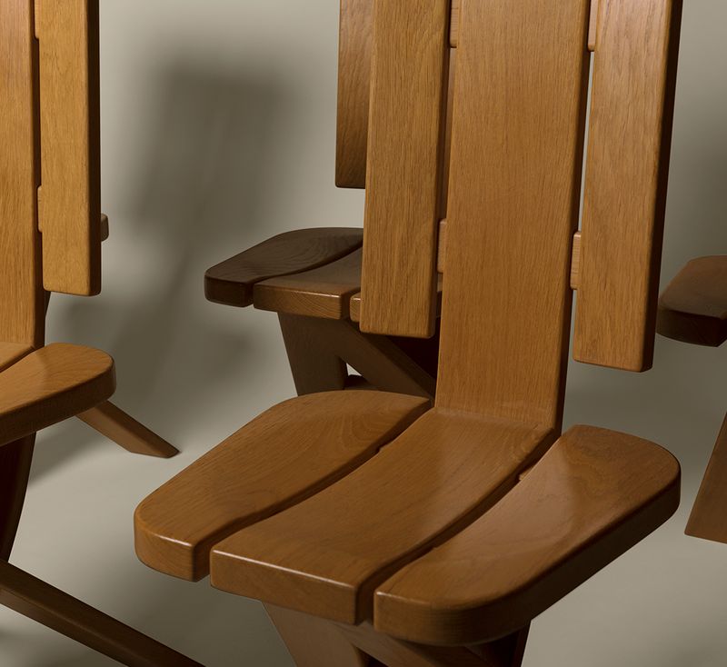 SET OF FOUR FRENCH SCULPTURAL OAK CHAIRS BY EBÉNISTERIE SELTZ