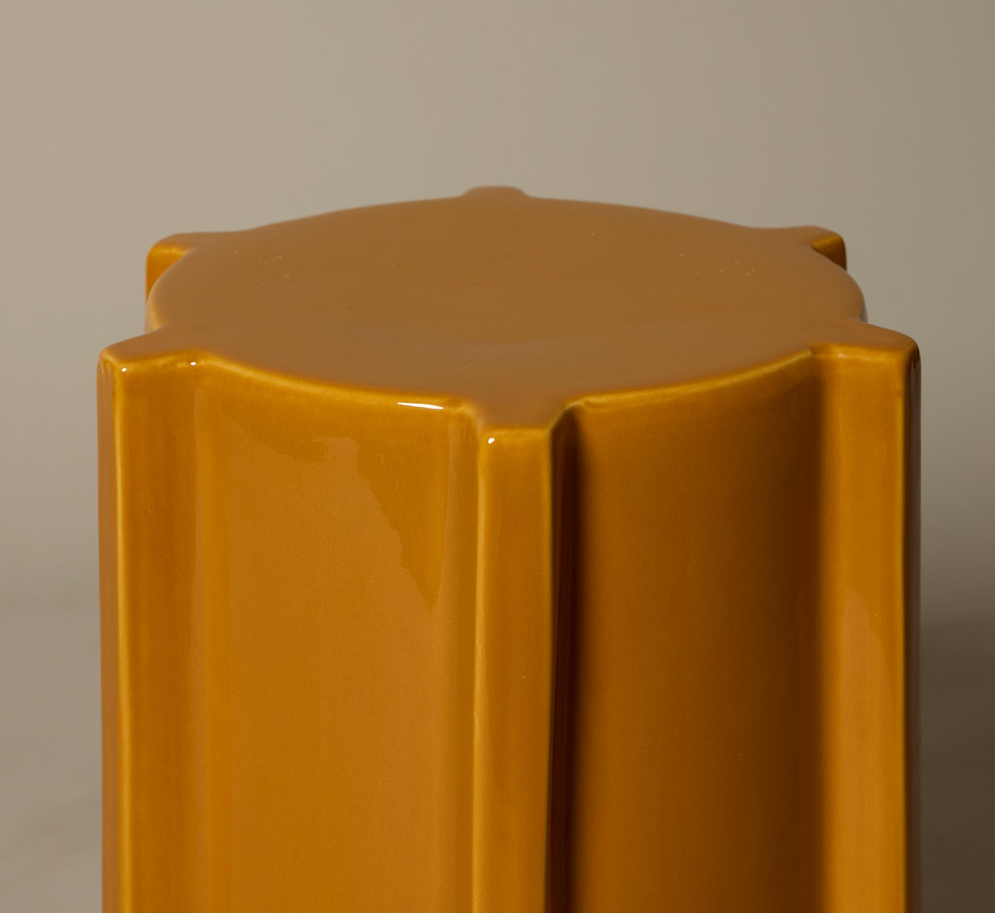 'Ochre Pawn' side table or stool by Serax. Crafted from stoneware in vibrant ochre glaze. Suitable for indoor or outdoor use.