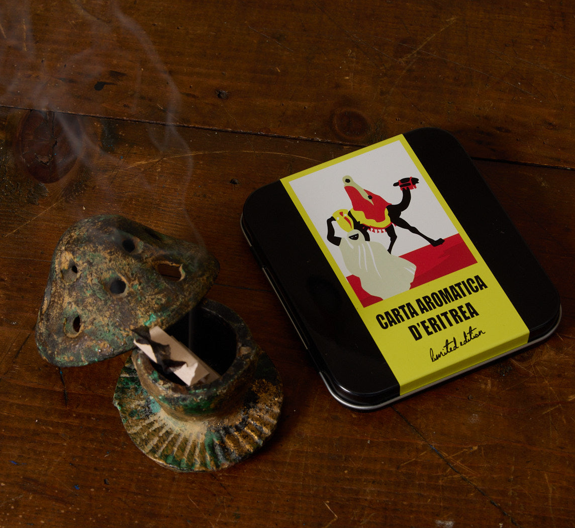 Vintage Japanese cast-iron mushroom incense burner with a heavily patinated surface and a detachable top that releases smoke through the perforated cap.